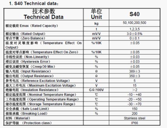 S40/200KG傳感器是由不銹鋼制成,含有不銹性和耐腐蝕性;