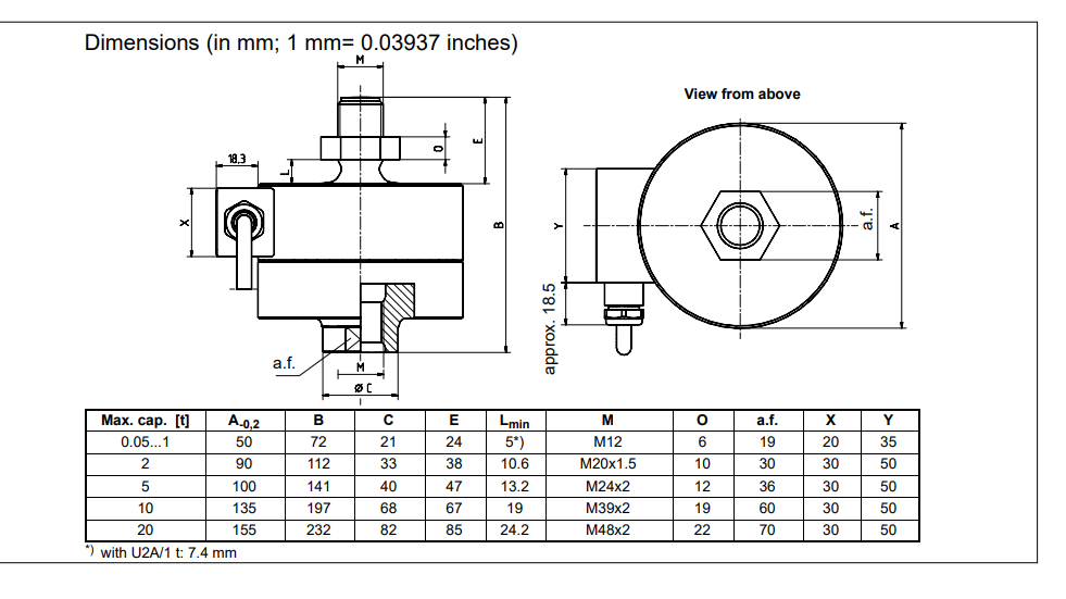krE廣州南創電子科技有限公司德國HBM稱重傳感器U2AD1/5t產品尺寸圖:krE廣州南創電子科技有限公司