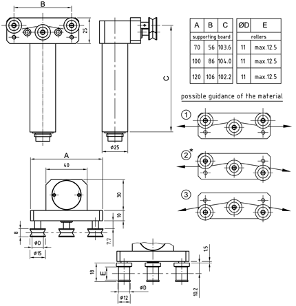3個帶V型槽的滾珠軸承鋁輥,根部Ø11mm