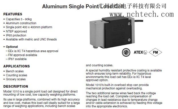 模型1010是單點(diǎn)負(fù)荷細(xì)胞designed for直接安裝低成本的低容量、平臺(tái)秤。