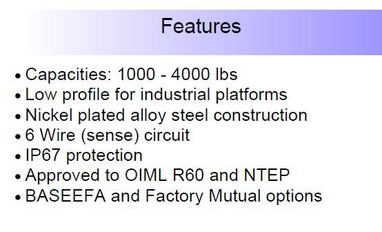 3410-250KG稱重傳感器主要特性: