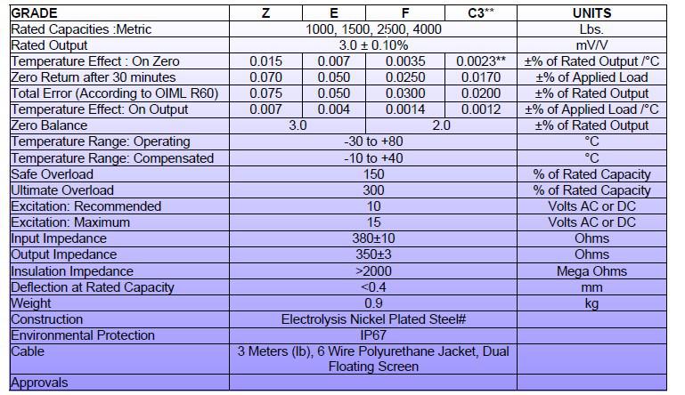 總誤差Total Error (According to OIML R60):0.075 0.050 0.0300 0.0200 ±% of Rated Output