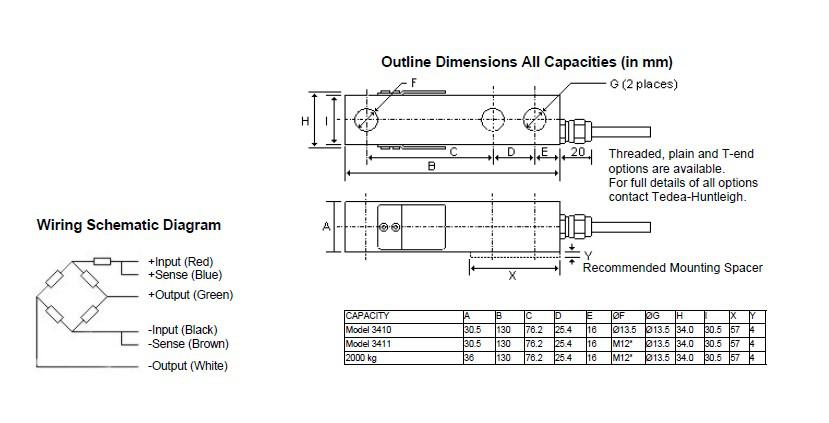 特迪亞稱重傳感器3410-250KG所有型號: