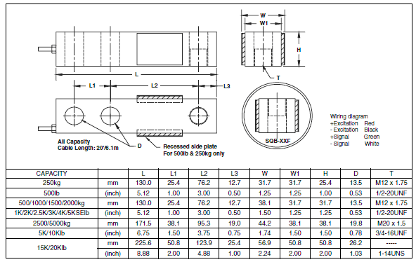 美國Celtron稱重傳感器SQB-1500KG參數:Q3X廣州南創電子科技有限公司