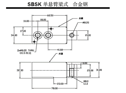 美國Transcell稱重傳感器SBSK-50kg產品尺寸: