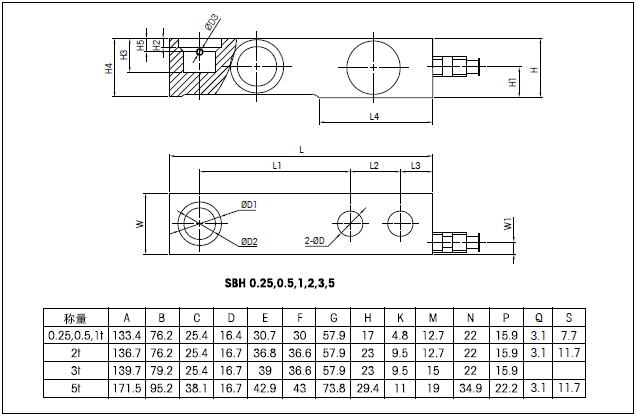 美國Transcell稱重傳感器SBT-500kg產品參數:shi廣州南創電子科技有限公司