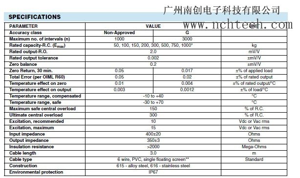 美國(guó)特迪亞tedea 615-750kg稱重傳感器特性: