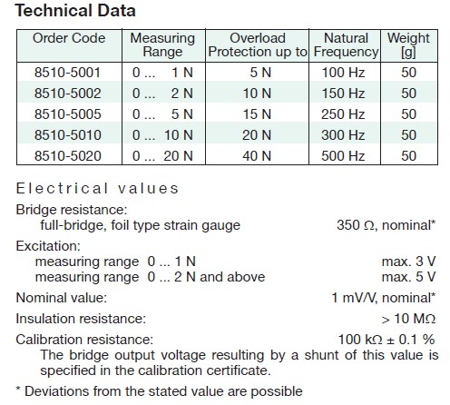 8510-5001:0-1N 5N 8510-5005 0-2N 10N 8510-5010:0-10N