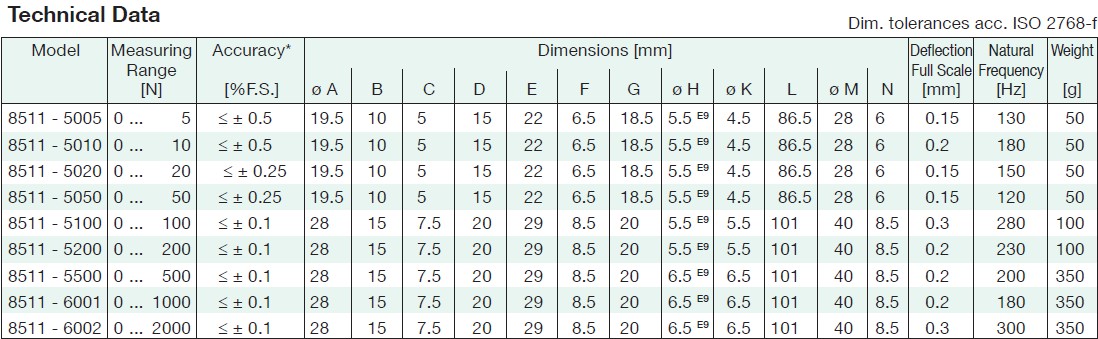截至測量范圍0 ... 200千牛頓的負載8511-6002傳感器不適合于一個非常高的數字周期性載荷。