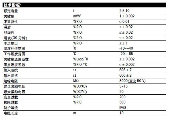 梅特勒托利多PGD-30稱重傳感器技術指標: