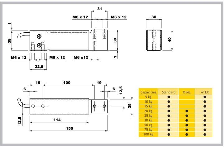同系列產品兩座橋的溫度補償電阻的橋梁,而意大利N.B.C.Elettronica AH-25kg稱重傳感器另一電阻器電路是用來調整橋的初始平衡,額定輸出和輸入電阻和其他參數所指定的值,負荷傳感器實際上是信號的 質量指成可測量的電信號輸出。