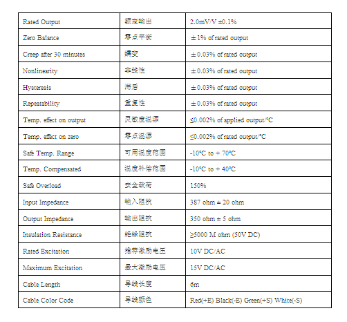 美國(guó)Transcell BSS-ESH-2.5T稱重傳感器技術(shù)參數(shù):