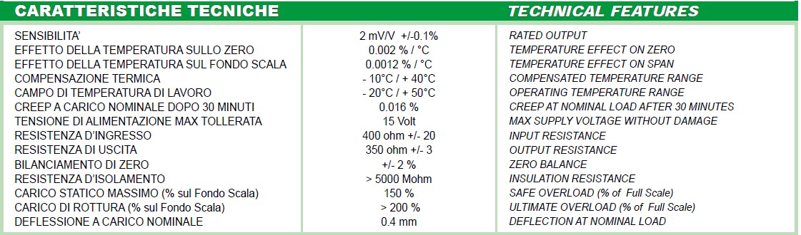 意大利LaumasFCA-750kg稱重傳感器技術特點: