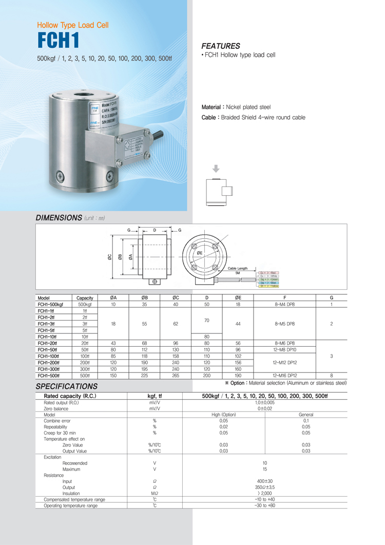 韓國Fine稱重傳感器 FCH1-200T型號其它相似型號: