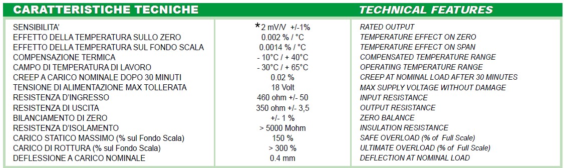 FCOL-200kg傳感器在ACCIAIO INOX 17-4 PH值- ERRORE COMBINATO < + / - 0,02 % ( 0.013 % C4 )