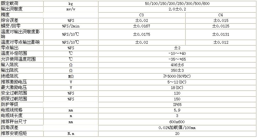 L6G-C4-150kg-3G6稱重傳感器相關(guān)技術(shù)參數(shù):