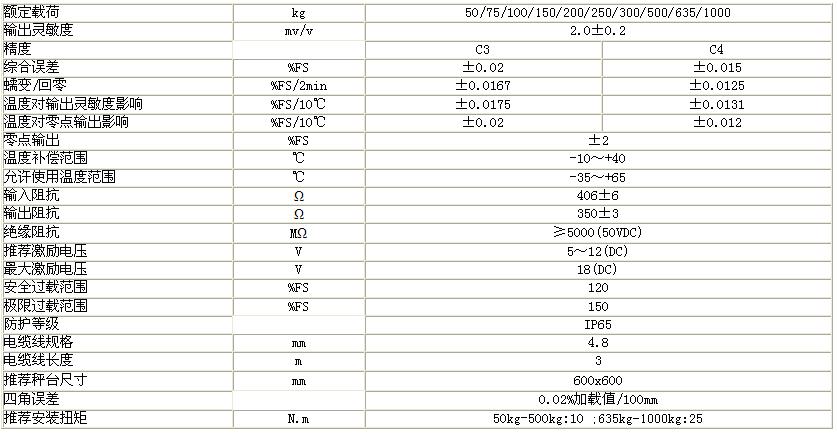 L6T-C3-100kg-3B6稱重傳感器密封等級:IP98