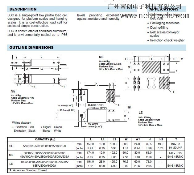 美國世銓LOC-50KGME稱重傳感器參照技術: