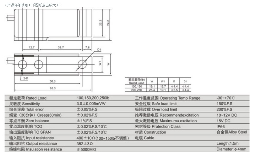 產(chǎn)品品牌:美國(MKcells)柯力稱重傳感器MBB-200LB