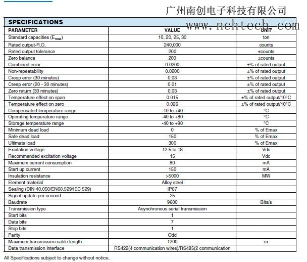 celtron MDBD-20T稱重傳感器技術(shù)參數(shù):
