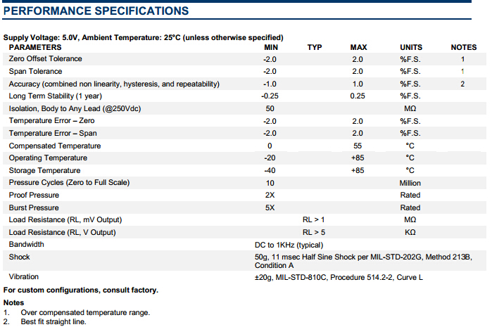 美國MEAS壓力傳感器MSP340范圍參考圖: