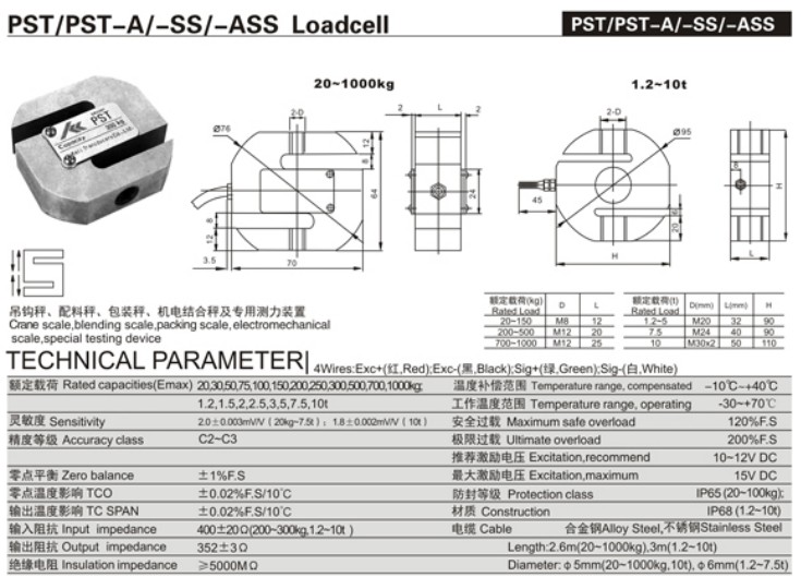 13 、PST/PST-A稱重傳感器:PST-20kg,PST-30kg,PST-50kg,PST-750kg,PST-100kg,PST-150kg,PST-200kg,PST-