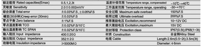 SBJ-A-2t稱重傳感器產品參數技術規格圖:fmE廣州南創電子科技有限公司