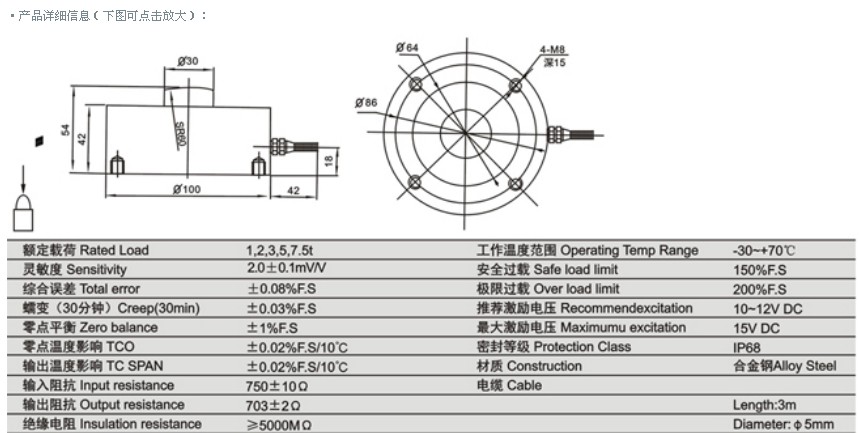 YBS-A-3t稱重傳感器技術參數特點:6fK廣州南創電子科技有限公司