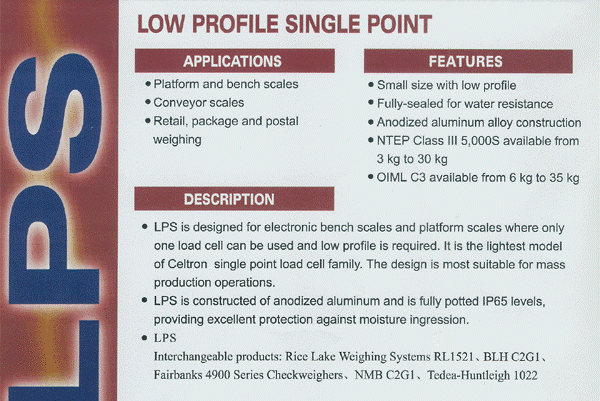 Celtron LPS單點式稱重傳感器應用:平臺秤,包裝機,計量/灌裝,皮帶秤/輸送機秤,運作檢查秤,零售秤/計數秤。