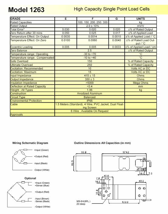 美國Tedea-Huntleigh 1263-300kg稱重傳感器技術參數圖:
