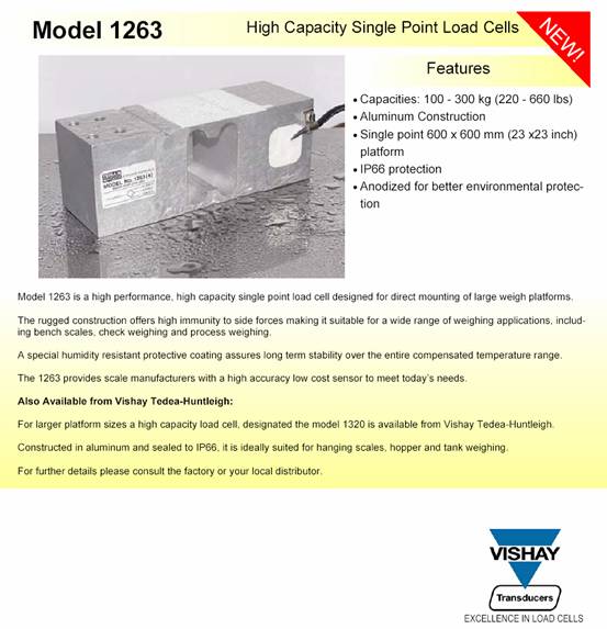 專門的潮氣防護保證了在溫度補償范圍下的長期穩定性。適用現在的需求,1263為秤廠提供高精度低成本的傳感器。