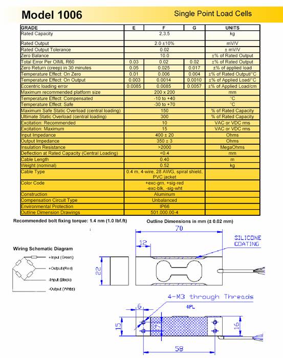 美國Tedea-Huntleigh 1006-2kg稱重傳感器技術參數圖:aEt廣州南創電子科技有限公司