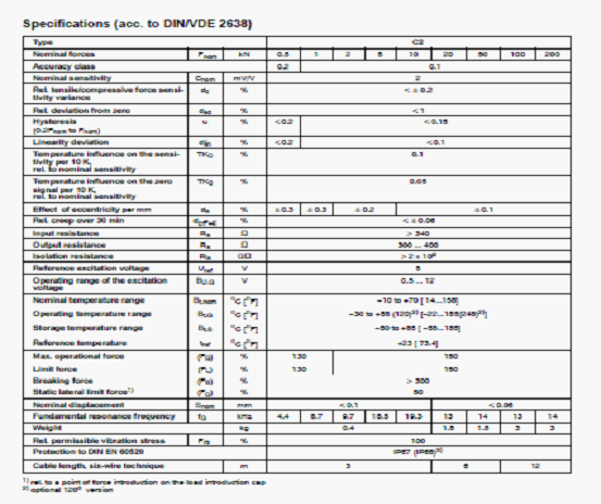 德國HBM C2/2T稱重傳感器技術參數圖: