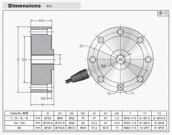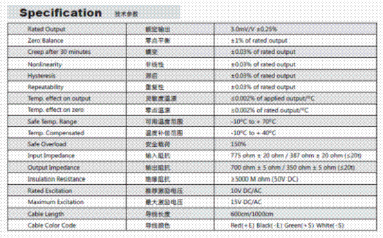 美國Transcell DBSL-3T稱重傳感器技術參數圖: