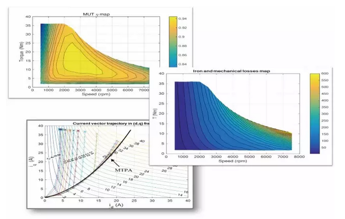 在 (d,q) 面的定子磁鏈?zhǔn)噶寇壽E對與基速下檢查 MTPA 矢量是非常有用的。
