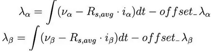 磁鏈?zhǔn)紫仍陟o態(tài) (a,b) 幀按照反電動勢電壓時(shí)間積分來計(jì)算: