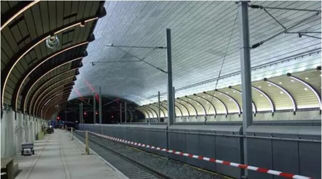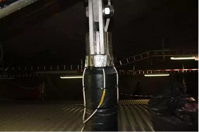 天花板采用 6 米長(zhǎng)的錨桿懸吊,采用特殊的方式安裝,以確保極高的安裝精度。這對(duì)安裝帶來了極大地困難,因?yàn)槠?離地 25 米高,并且有 200 多個(gè)應(yīng)變測(cè)量點(diǎn)。