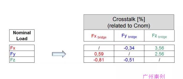 在涉及多個(gè)負(fù)載的測(cè)量任務(wù)中,串?dāng)_是通常存在的。如果僅在一個(gè)方向上施加載荷,原理上,基于泊松效應(yīng),由于傳感器的橫向靈敏度,在其他軸上也有很小的輸出信號(hào)。在這種情況下,可采用相關(guān)技術(shù)使這些橫向應(yīng)變效應(yīng)(串?dāng)_)最小化。例如,HBM 的 PMX 或 QuantumX 數(shù)據(jù)采集系統(tǒng)可通過(guò)“矩陣補(bǔ)償”進(jìn)行補(bǔ)償計(jì)算。這種技術(shù)可使串?dāng)_降低3到5倍。多軸傳感器的單獨(dú)補(bǔ)償矩陣是目前串?dāng)_最小化的必要技術(shù),因此仔細(xì)檢查傳感器制造商如何處理串?dāng)_問(wèn)題是非常重要的。