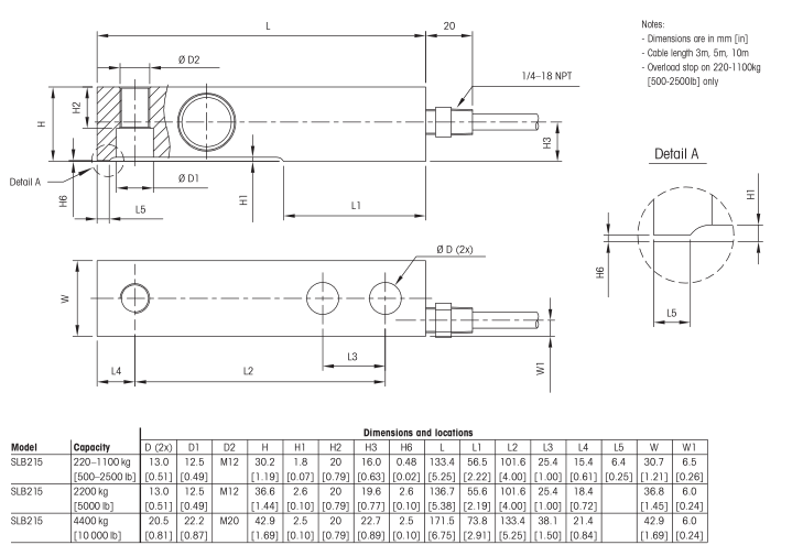 AXw廣州南創電子科技有限公司METTLER TOLEDO稱重傳感器SLB215-1.1t尺寸圖:AXw廣州南創電子科技有限公司