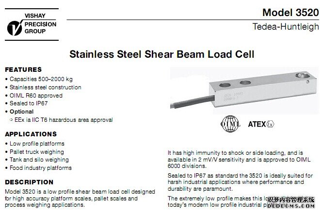 美國Tedea 3520稱重傳感器現貨、價格、產品資料、圖片、貨期、發貨方式、技術參數