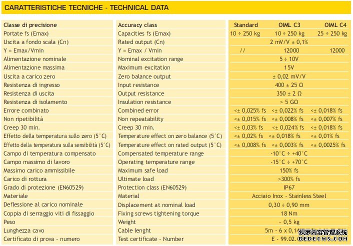 意大利NBC Elettronica稱重傳感器部分型號介紹:ysq廣州南創電子科技有限公司