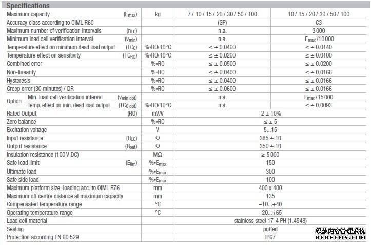 德國富林泰克FLINTEC稱重傳感器部分型號介紹: