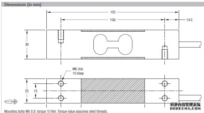 測力傳感器上設(shè)置有一個屏蔽,6芯電纜(AWG26)。