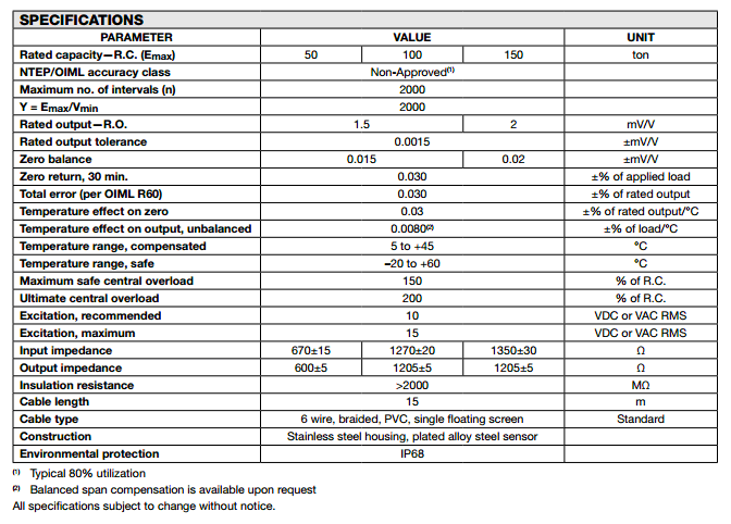美國Tedea 122系列稱重傳感器所有量程如下:zBh廣州南創電子科技有限公司