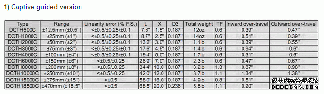 英國RDP DCTH LVDT位移傳感器產品技術參數圖:04t廣州南創電子科技有限公司
