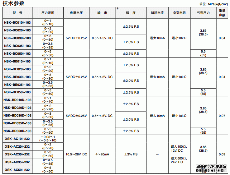 日本鷺宮XSK系列壓力傳感器產品技術參數圖:g5P廣州南創電子科技有限公司