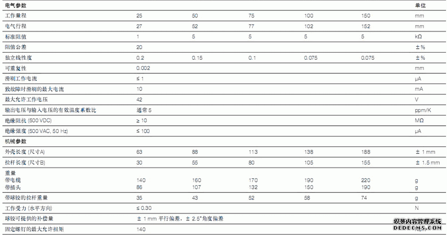 德國Novotechnik TS系列直線位移傳感器產品參數圖:AwB廣州南創電子科技有限公司